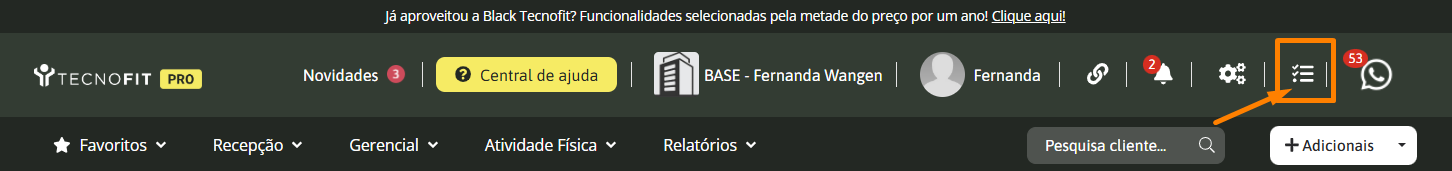Clique no ícone de tarefas no canto superior direito da tela do sistema: