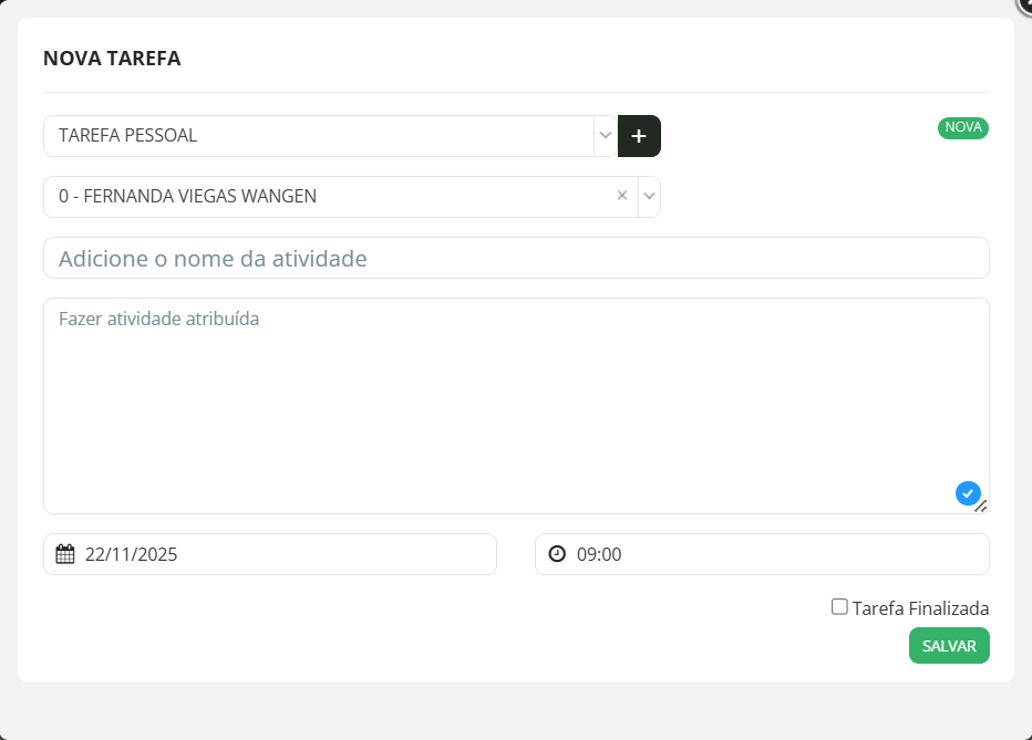 Para atribuir uma tarefa, clique em "Nova tarefa"