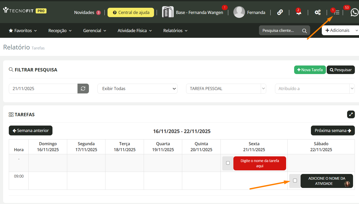 Através do Tecnofit você consegue organizar a suas tarefas, criar tarefas para seus colaboradores e ter um controle de tudo que está sendo feito.