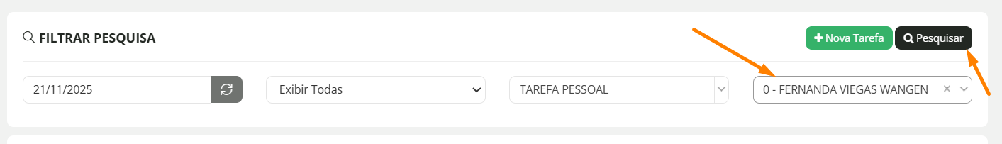 Também é possível filtrar as buscas por atividades por colaborador: