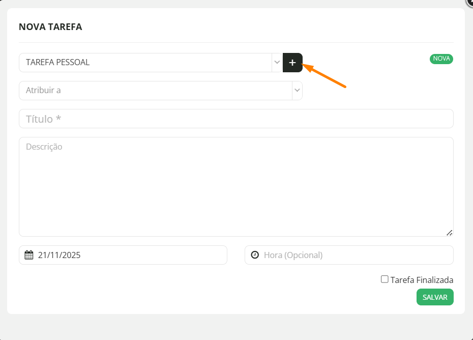 Ao criar uma nova tarefa, no final do primeiro campo, clique no sinal de "+"