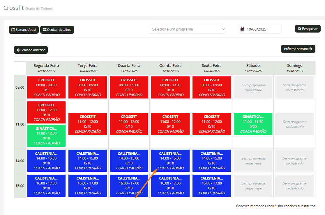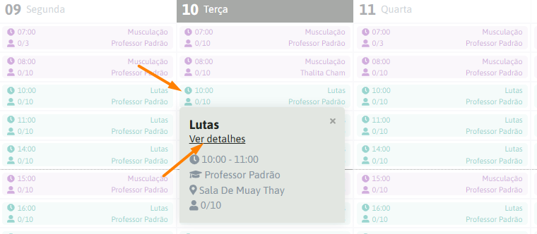 - Escolha a aula desejada no calendário, e clique em "Ver detalhes":