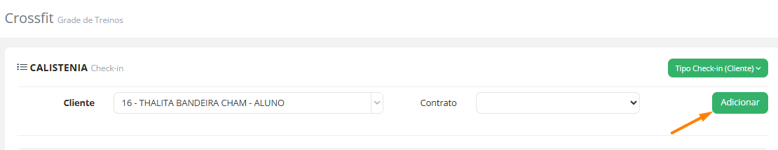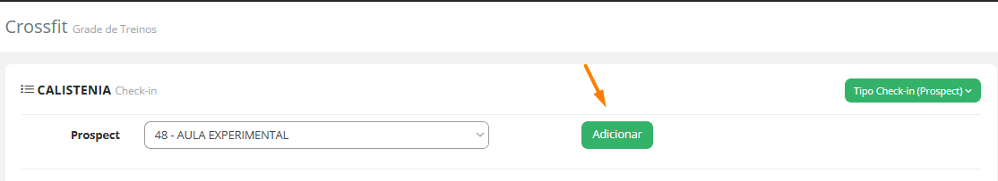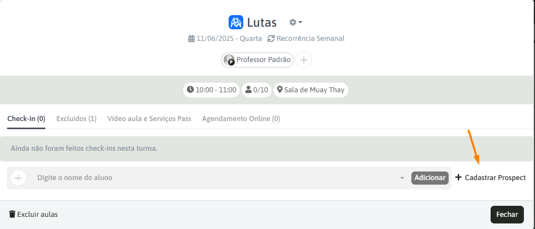 ⚠️ É necessário efetuar o cadastro deste aluno como prospect antes de incluí-lo no treino, não existindo a opção de criar o prospect diretamente na aula. Suba a página para encontrar este passo a passo.