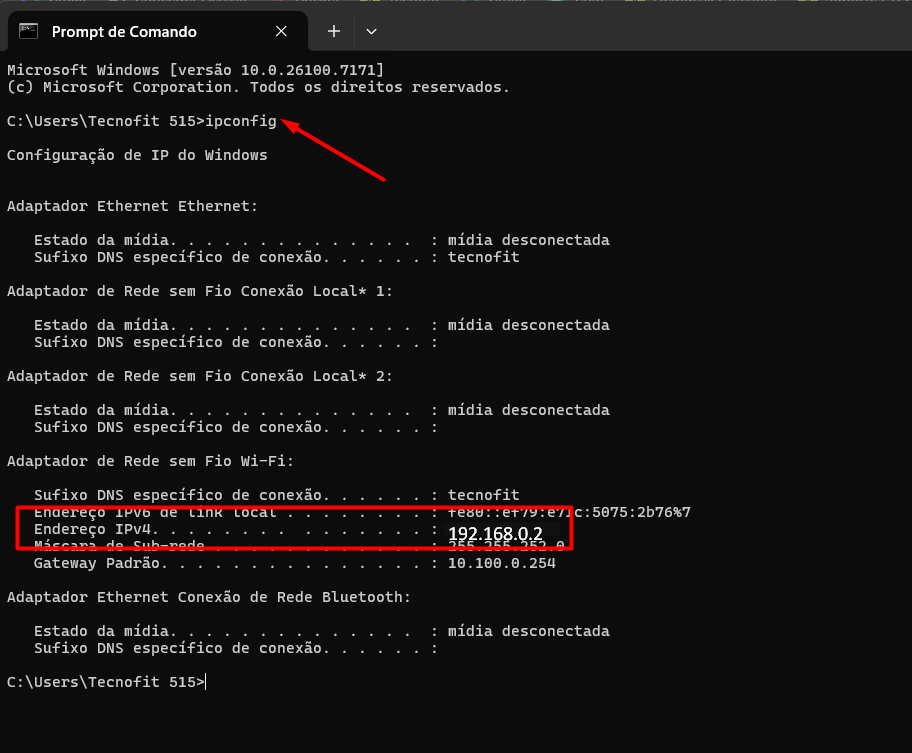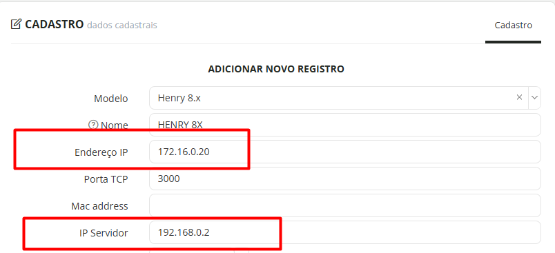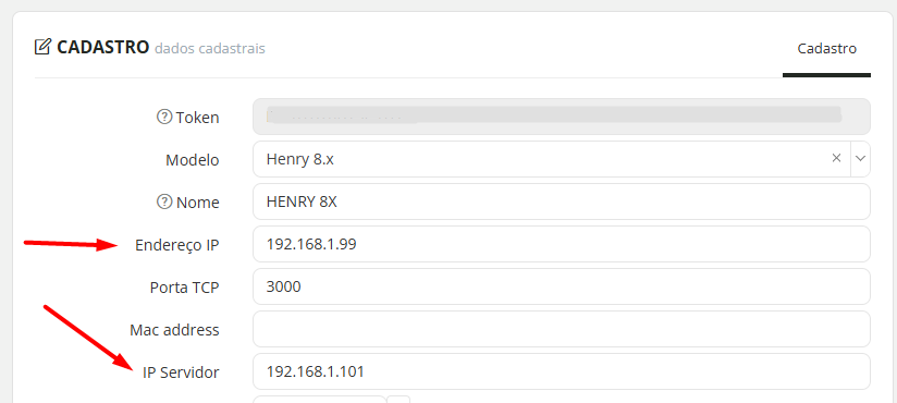 192.168.000.100, no Tecnofit registre192.168.0.100(remova zeros à esquerda de cada octeto). - No Tecnofit: Gerencial → Configuração → Catraca → atualize o IP → desça a página e clique Salvar.