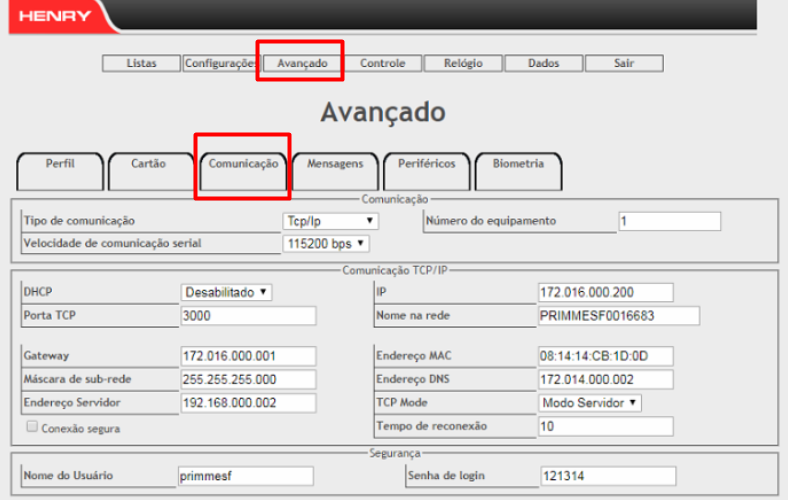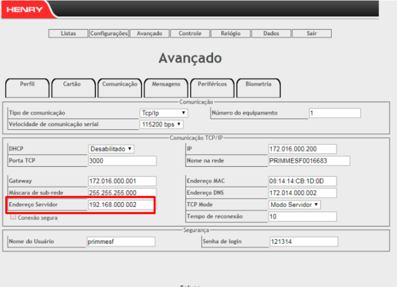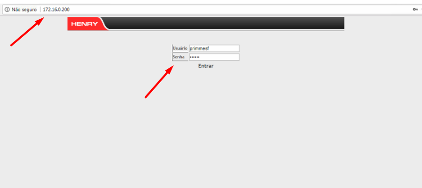 Obs: Se for o novo modelo Evo (também é uma Henry 8x) login: evoAcesso senha: 090291