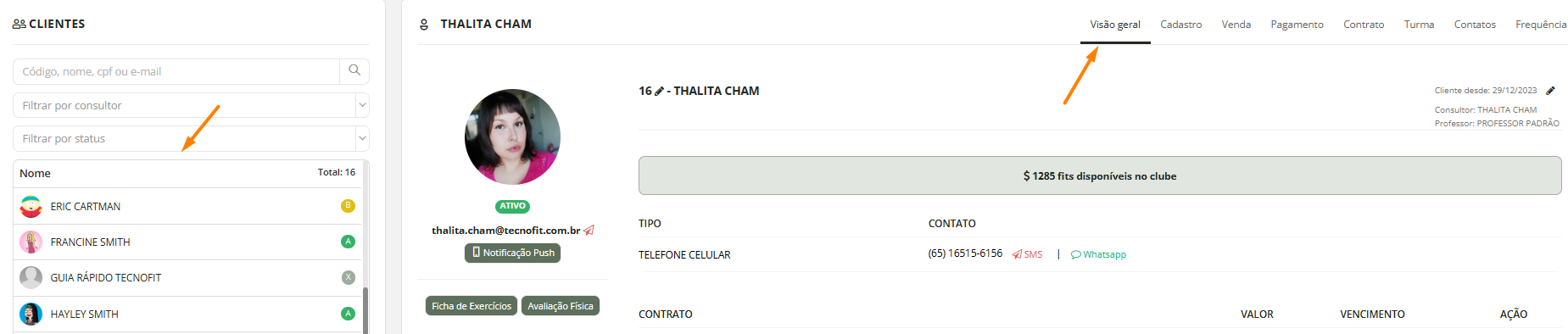 2. Localize o cadastro do Aluno, na aba Visão Geral