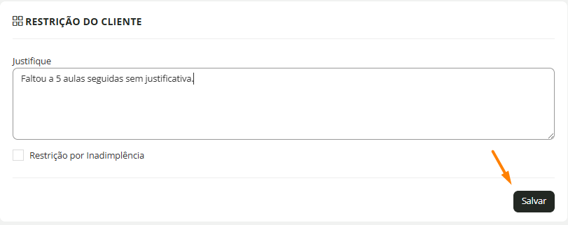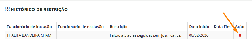 A restrição não cancela contratos nem remove dados do aluno. Ela serve apenas como uma trava temporária, útil em situações como inadimplência ou necessidade de regularização documental.