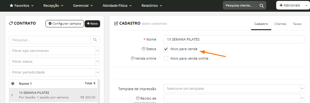 Palavras-chave: desabilitar contrato, contrato inativo, venda de contrato, sistema gerencial, itens de venda