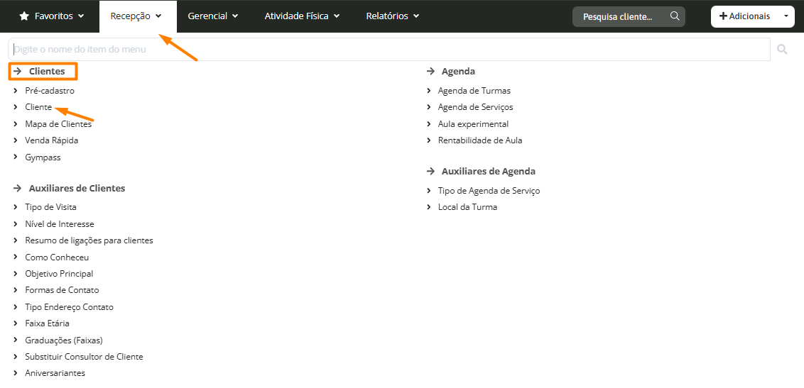 - Acesse Recepção > Clientes > Cliente, e abra o cadastro do aluno: