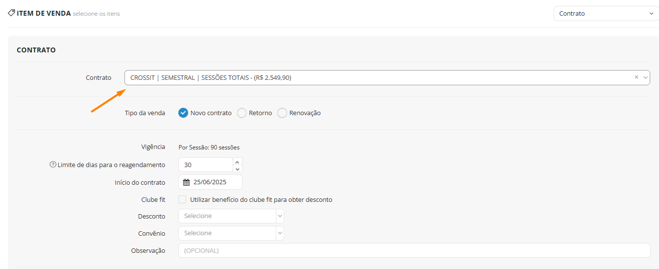 Venda de contrato: Os contratos representam planos de acesso à academia, como mensalidades, pacotes e planos recorrentes. Eles determinam por quanto tempo o aluno poderá frequentar a unidade, com ou sem fidelidade.