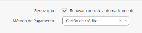 Caso esteja vendendo um contrato de renovação automática, deverá decidir a forma de pagamento no momento da venda;