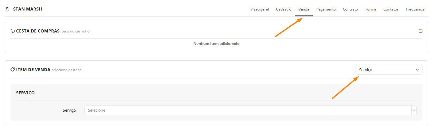 Venda de serviço: Os serviços são atividades pontuais ou pacotes avulsos que não envolvem um contrato contínuo — como avaliações físicas, sessões de massagem, personal trainer, entre outros.