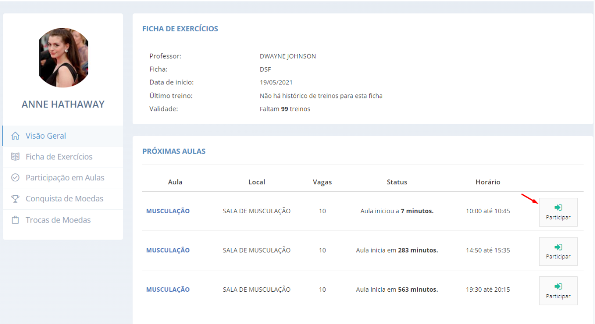 - Acessando o terminal, visualize os menus clicando em "Acessar" ou imprima o treino do dia clicando em "Imprimir".
