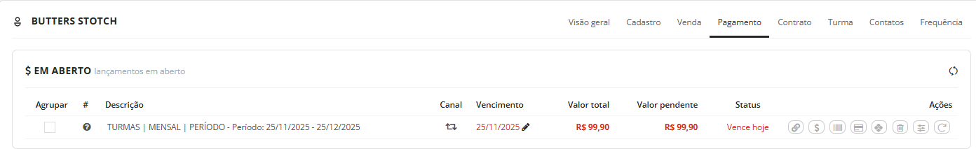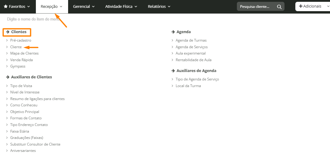 1. Acesse Recepção > Clientes > Cliente e abra o perfil do aluno:
