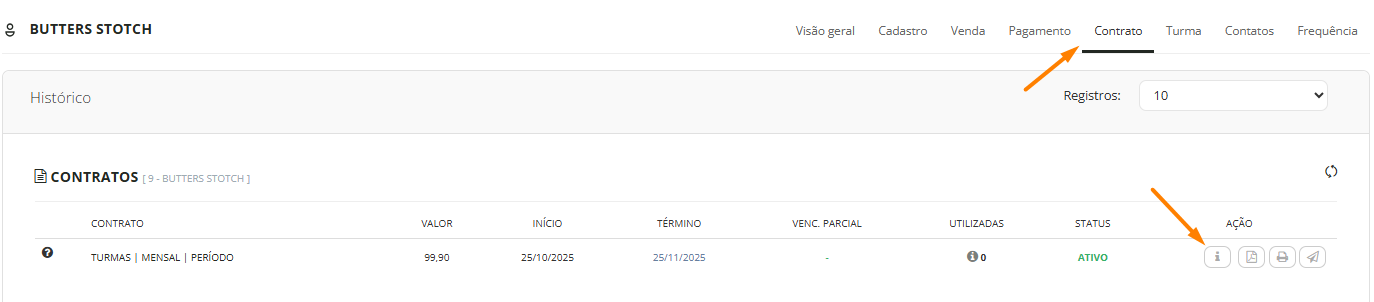 2. Clique na aba "Contrato" e depois em "Dados do contrato":