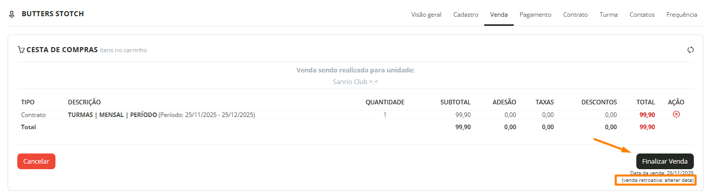 5. Altere a data da venda (se necessário), e clique em "Finalizar Venda":
